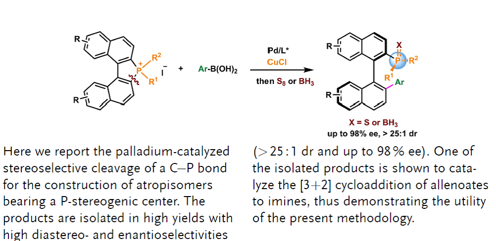 本网讯 近日,我校理学院手性功能分子合成团队以季鏻盐为原料,通过发展高效不对称催化体系,实现了一系列手性含膦小分子化合物的快速合成,在国际上首次实现了碳膦键的不对称转化。研究结果在线发表在化学及相关领域国际顶级期刊《德国应用化学》(Angew. Chem. Int. Ed,IF = 16.823)。我校理学院2020级研究生庞良智、孙麒麟和2021级研究生黄湛为论文共同第一作者,李乾坤教授和俞杰教授为共同通讯作者。该研究得到国家自然科学基金、安徽省自然科学基金、安徽省留学回国人员创新创业扶持计划及学校高层次人才引进科研启动经费的资助。