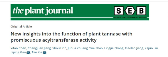 本网讯 12月21日和24日,我校茶树生物学与资源利用国家重点实验室夏涛课题组在国际植物学权威学术期刊The Plant Journal和农业食品领域权威学术期刊Journal of Agricultural and Food Chemistry,在线发表了题为“New insights into the function of plant tannase with promiscuous acyltransferase activity”和“Flavan-3-ol galloylation-related functional gene cluster and the functional diversification of SCPL paralogs in Camellia sp”的研究论文,这是该课题组在茶树等植物中酯型儿茶素、没食子单宁和鞣花单宁的合成代谢方面一系列研究的新成果。