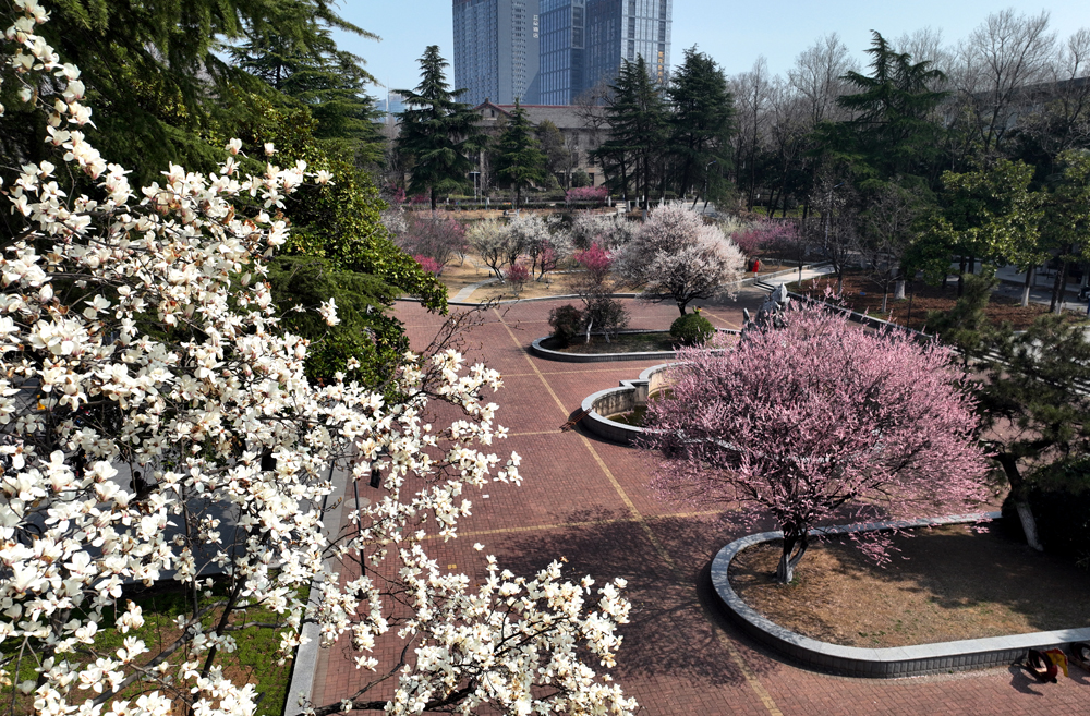 正值初春,校园里一片欣欣向荣的景象。在勤学楼前广场,在“一里银杏”景点,在梅苑,同学们或晨读,或春日写生,或开展教学实践,在大好时节努力奋斗,人与景融为一体,展现了安农人奋进正当时的良好风貌。