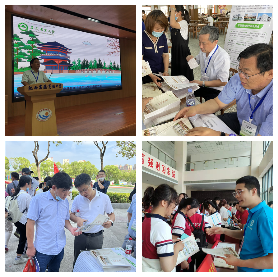 学校充分利用 6月24日—30日高考志愿填报黄金时期,培训选派全校招生骨干教师合计16组40余人参加全省90余所省级示范中学高招咨询会。在各咨询会现场,宣传队工作人员不辞辛劳,顶高温,冒酷暑,热情、耐心地解答现场考生和家长关注的热点问题。学校还积极利用各类公共媒体开展招生宣传,先后参加中央广播电视总台农业农村节目中心“2022年高考报考(农科)专业指南”融媒体直播,安徽省考试院大型直播咨询会、安徽日报高招咨询会、中安在线高考直通车、市场星报高招直播咨询等电视、网络直播咨询会,向广大考生及家长详细解读了我校的各项招生政策,帮助考生、家长更为合理的填报志愿,进一步提升了我校吸引力和社会知名度。
