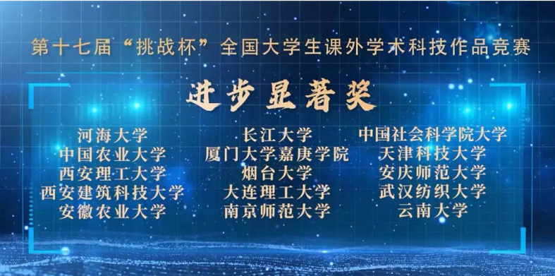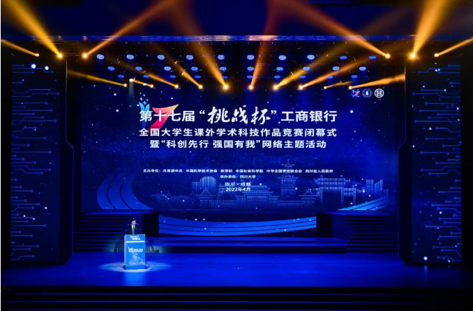 本网讯 4月12日,由共青团中央、中国科协、教育部、中国社会科学院、全国学联、四川省政府共同主办,四川大学承办的第十七届“挑战杯”全国大学生课外学术科技作品竞赛闭幕式暨“科创先行 强国有我”网络主题活动举办。团中央书记处书记傅振邦,四川省副省长杨兴平,全国评审委员会主任、中国科学院院士袁亚湘,四川大学党委书记王建国、校长李言荣出席。我校荣获第十七届“挑战杯”竞赛进步显著奖和专项活动优秀组织奖,其中,校级“进步显著奖”全国仅15个。