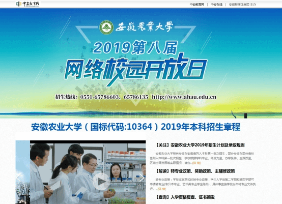 近日,中安教育网2019第八届网络校园开放日对我校进行了专题宣传,发布了我校2019年本科招生章程,对学校2019年本科新生录取规则、各专业历年录取分数线、转专业政策、奖助政策、主辅修政策等考生关心关注的问题进行解读,同时还对我校各学院进行了集中推介。